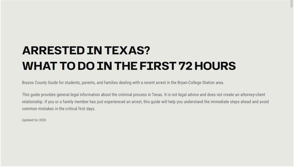 If you or your child were arrested in College Station or Bryan, the next 24–48 hours can feel overwhelming.